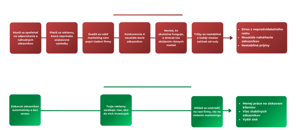❌ Nemajú systém na získavanie klientov – všetko riešia nárazovo