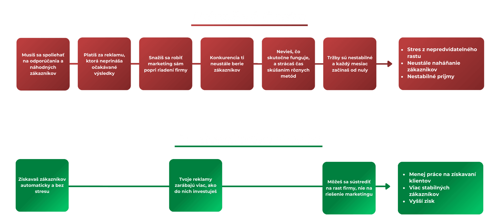 ❌ Nemajú systém na získavanie klientov – všetko riešia nárazovo